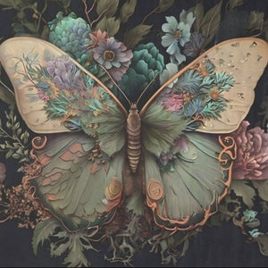 Perhonen ja turkoosit kukat - yksittäiset decoupage taidearkit