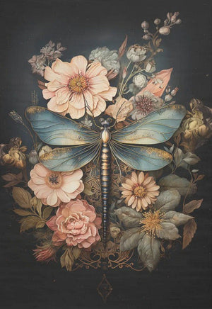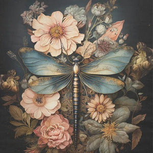 Dragonfly and light flowers - individual decoupage art sheets