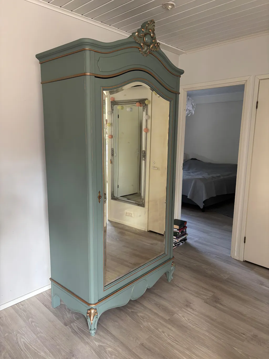 Ihana yhdistelmä ja miten kaunis kuva! Tämä on oikea sisustuksen katseenvangitsija Vihreä Steaming Green seinämaali toimii upeasti mattapintaisena ja rauhoittavana sävynä myös kalusteissa, ja Finishing Coatin sävytys kuparilla tuo siihen juuri sopivan ripauksen lämpöä ja kontrastia. Tässä yhdistelmässä väri ei vain näy, vaan elää kauniisti valon mukana. Vinkki muillekin kokeilijoille: Finishing Coat + Frensheen metalipigmentit = sävyttämisellä saa helposti yksilöllisen, metallinhohtoisen efektin esimerkiksi yksityiskohtiin tai tehostepintoihin ✨ Kiitos ystävällisestä palautteesta.