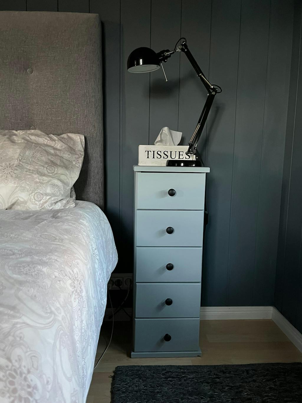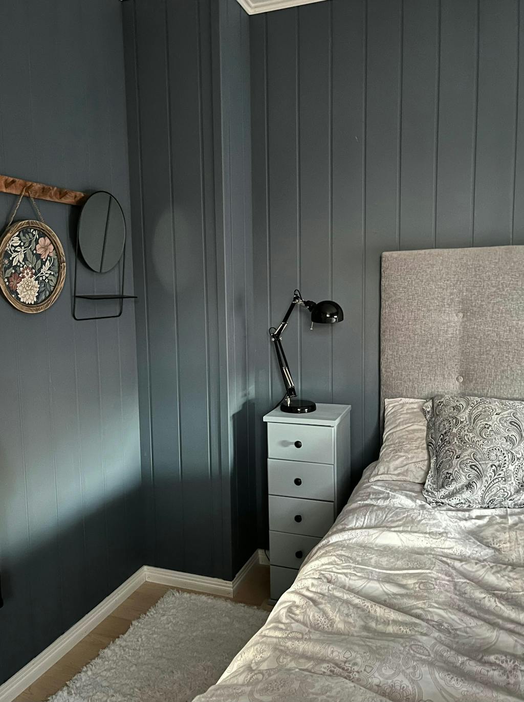 Maalasin tällä yöpöydät ja Trim Paintilla maalaaminen on aina ihanan helppoa ja nopeaa; maali levittyy tasaisesti, ei valu ja kuivuu nopeasti. Lopputuloksena kauniin himmeä ja samettinen pinta. Kaksi kerrosta maalia peitti täydellisesti.
