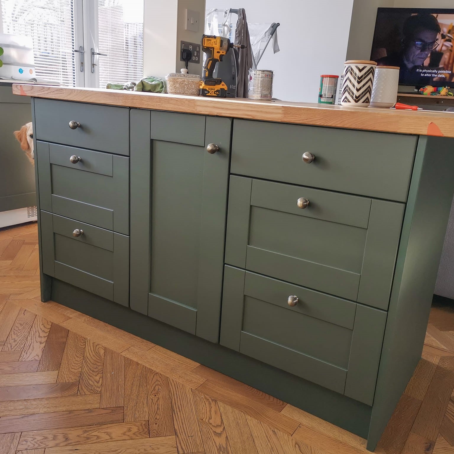 Yhdistin Blackjack-, Salt of the Earth ja Steel Teal- purkkien pohjat ja lopputulos oli aikas kiva. Jos tuntuu, että lopputulos ei osunut kerralla nappiin, aina voi lisäillä sävyjä, kunnes lopputulos miellyttää. Sekoiteltaessa kehittyy nopeasti tuntuma, miten mikäkin sävy käyttäytyy toisen sävyn kanssa. Toki uusissa yhdistelmissä on aina ripaus yllätyksellisyyttä ja se onkin aika kutkuttava tunne.