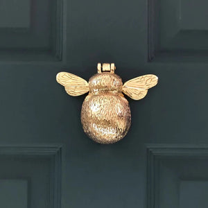 The original Brass Bumble Bee Door Knocker design is crafted from solid brass using traditional techniques. Its charming bumble bee shape features a polished brass finish alongside intricate etched details across the small wings and bee body. The wings of the bee door knocker are attached to the striking plate, whilst the body of the bee is lifted to create a solid knock!