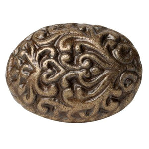 Ovaali antiikkikultainen nuppi - koukeroita ja sydän