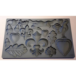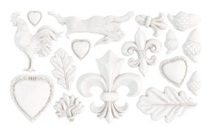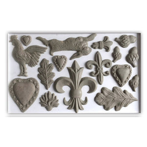 Pidämme näistä ominaisuuksista, sillä ne antavat kuluneen, aidon vintage-ilmeen. Suosikkitapamme soveltaa muottiin valettuja kappaleita on poistaa ne muotista, kun ne ovat vielä kosteita, ja kiinnittää ne pintaan sopivalla liimalla, jotta ne mukautuvat hyvin, varsinkin jos haluat kiinnittää koristeen kuperaan tai kaarevaan pintaan. Pystysuorilla pinnoilla voit käyttää myös teippiä pitämään koristeen paikaallaan.