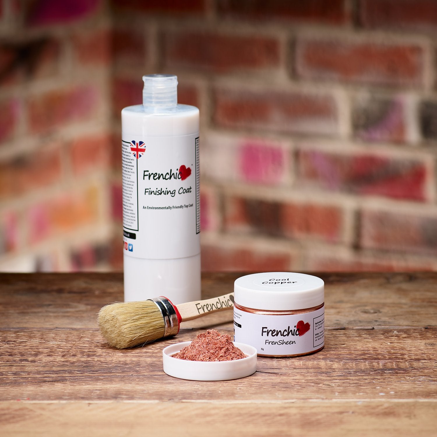 Frenchic Frensheen is a natural mineral powder for adding 'pizzazz' to your painted furniture - embellish with decorative details, update handles, highlight carving.... Available in 5 metallic colours – Bronze, Copper, Gold, Green and Silver. Mix the desired amount with your choice of Frenchic top coat to form a paint consistency or with Clear Wax. The more added the bolder the colour. Frensheen is extremely easy, fun to use and produces startling results. It has also gone through rigorous testing to be REACH certified.